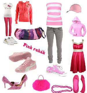 Reméljük ez a mix is tetszik nektek. A pink ugyanolyan divatos szín lesz idén nyáron mint ahogy a lila is. Gondoljunk csak vissza kb a 2003/2004 es évre, amikor is szintén a pink vezette a színek toplistáját. Most úgy látszik egy hullámba keveredtünk, ami visszasodorta a rózsaszínt a mindennapi trendbe. Akkor kezdjük is ezeknek a csini daraboknak a jellemzését. Az első szett nekünk azért is tetszik igazán, mert abszolút átlagos, mégis tökéletesen megfelel az idei divatnak. Egy egyszerű hello-kitty-s darab a póló, és ha már hello-kitty, ahhoz bizony pink nadrág illik. Ez a pink nadrág itt megtalálható, és egy fehér tornacipővel, vagy egy egyszerűbb pink cipővel is passzol, de akár egy olyan topánkát is felvehettek hozzá, mint itt a jobb alsó sarokban található cipellő. A hidegebb őszi napokra érdemes felvenned egy olyan felsőt, mint amit itt, az 1. szett mellett láthattok. Formáját tekintve tökéletes, ugyanis a kapucnis felsők most nagyon divatosak, és színe pedig passzol a kollekcióhoz. A 2. szett főbb színe természetesen a rózsaszín, ám a nadrág szürke, ami roppantul illik ehhez a fajta rózsaszínhez. A csőnadrágok tartják a méltó helyüket, ugyanis akárcsak tavaly, most is trendik a csőnadrágok. Azt viszont a figyelmetekbe ajánlom, hogy ha egy ilyen toppot vesztek fel, vegyetek fel felsőnek egy hasonó darabot mint ami e-mellet van. Hiszen az nagyon hideg lenne nem??!! A Converse cipő rendkívül aranyos választás ehhez, de ha egy pink puma cipőt veszel fel hozzá, akkor sem rontod el a kollekciót. A baseball sapka pedig praktikus ha rossz a hajad, vagy ha még lazább szeretnél lenni. Az egyberuhás kollekciót igazából nem azért raktam fel, hoyg őszre mintát vegyetek róla. Ahhoz túl hideh lenne. De ugyebár bulik vannak ősszel is...:D! És ha pinkes kedvedben vagy, akkor felveheted egy buliba ezt a darabot, az alatta lévő topánnal, vagy a bal sarokban lévő kis magassarkúval is. A kiegészítőkről azért nem beszéltem igazán, ugyanis bármelyik cipőt/táskát/nyakláncot kombinálhatod bármelyik szettel.De ha ezeket nem alkalmazod, öltözéked már divatos;)
